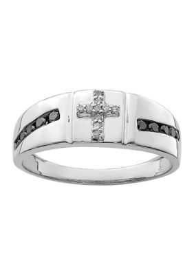 Belk Co Men S 1 4 Ct T W White And Black Diamond Cross Ring In Rhodium Plated Sterling Silver Belk