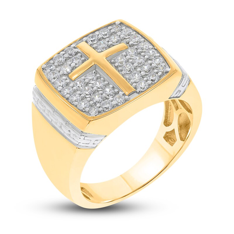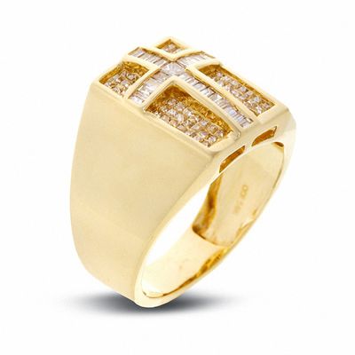 Men S Cross Ring 1 20 Ct Tw Diamonds 10k Yellow Gold Kay